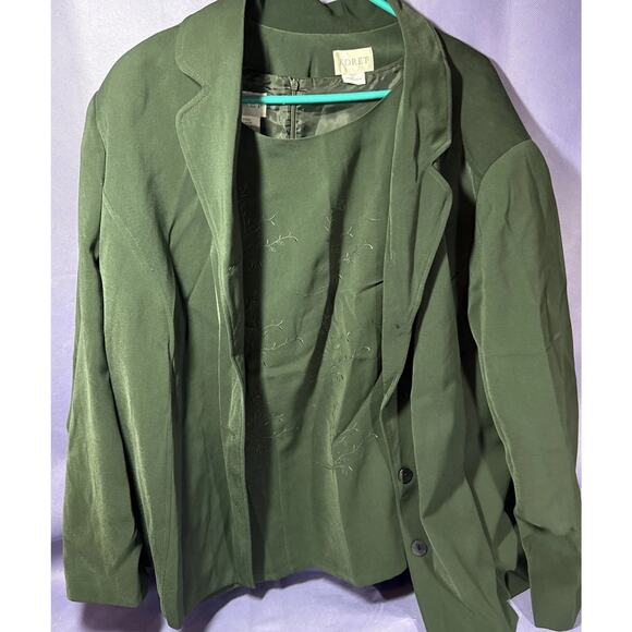 Koret Women Sz 22W Green Floral Button Jacket Cotton Shoulder Pads V3