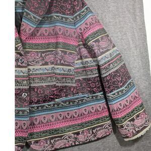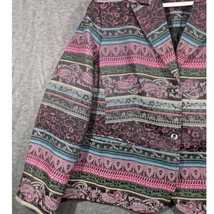 Koret Women's Button Up Blazer Floral Paisley Strips Pink Size 18W