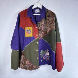 Koret Womens Patchwork Jacket XL Multicolor Floral Paisley Embroidered Button Up