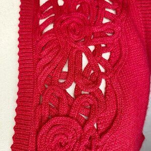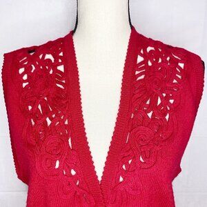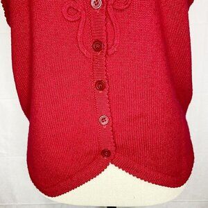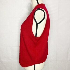 Koret Women’s Red Wool Blend Sweater Vest Size Medium Ribboning Design Cardigan.