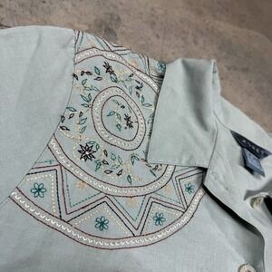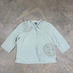 Koret Womens Top Button Front Shirt Embroidered Sun Pattern Floral Linen Blnd XL