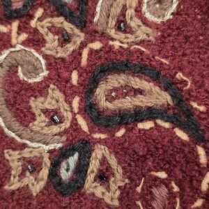 Koret Women's Vintage Wool Blend Floral Embellished Vest Dark Red Size XL