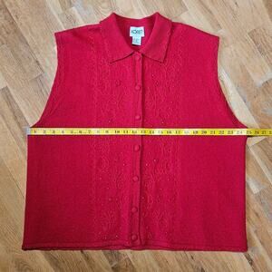 Koret Wool Red Sweater Vest XL Peter Pan Collar Embroidered Button Front Vintage