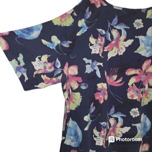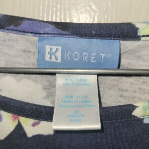 Gently used koret floral print flat lay measurements approximate size 3 X pit to pit 30" times by 2 length 29" sleeve 12" # B 23 6.17