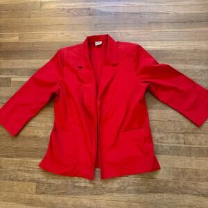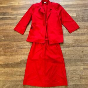 Koret red cotton duck open blazer and pull on skirt set size 14 b12