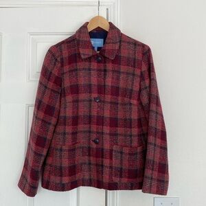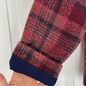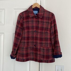 Koret vintage tweed plaid shacket in size 10. It features a fabulous color combination that can be worn either oversized or fitted. Roll up the sleeves for an academia aesthetic. It has big navy buttons and front pockets. The shacket is lined, making it a versatile piece that can be worn as a shacket, jacket, or blazer. Style it with a white tee and light denim for a fun and casual look. It also pairs well with barrel jeans.
