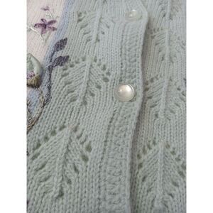 Koret Petites Vintage White and Pastel Embroidered Floral Cardigan Women's Large