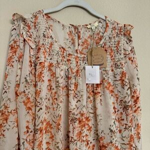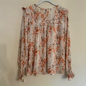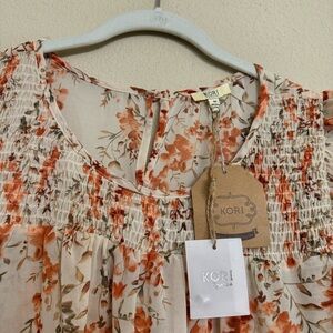 Kori America Floral Peasant Sheer Multicolor Blouse Size Medium Sheer Modest