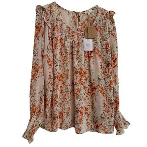 Kori America Floral Peasant Sheer Multicolor Blouse Size M