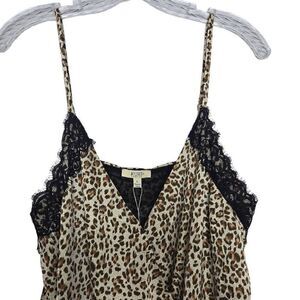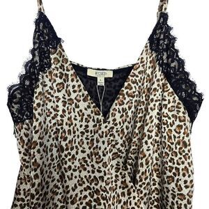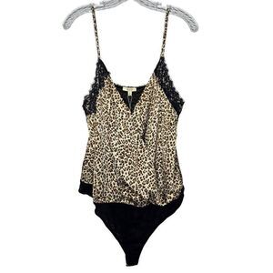 Kori America Leopard Print Satin Spaghetti Strap Bodysuit Size Large