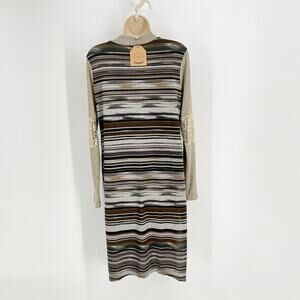 Kori America NEW Sage/Mix Stripes Sequin Elbows Duster Cardigan Womens Sz S