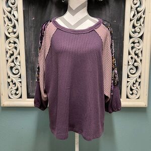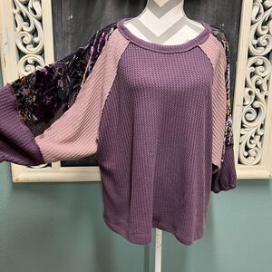 Kori America Purple/Lavender Large Velvet burnout wide sleeve top
