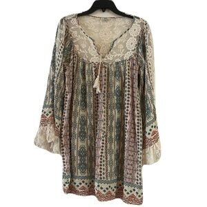 • Boho Chic Ruffles & Lace Tunic Dress Plus Size