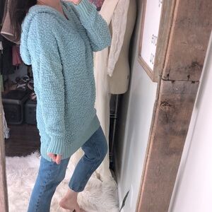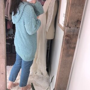 Kori America blue knit cozy oversized sweater hooded size small