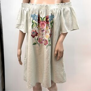 Kori America off the shoulder boho embroidered dress with pockets. Great summer dress. Excellent condition. Size Large