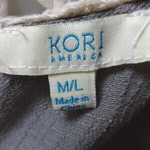 Kori America women's M/L, vest, gray with cream crochet fringe, loose fit, open style