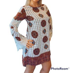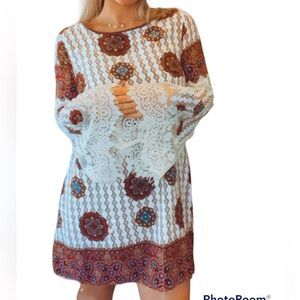 Kori America | Boho Lace-Trim Tassel Shift Dress, size small. Flowing and festival-ready, this pick boasts a comfortably relaxed fit and bohemian motif.
