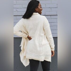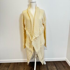This Ivory Draped Fringe Cardigan is a perfect Layering piece for Winter and Fall! Dress it up or down for any occasion. Size Medium - Large.