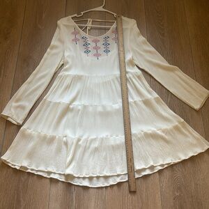 Elegant ivory dress featuring geometric embroidery. Long sleeves with a relaxed fit.