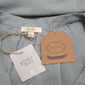 Kori | NWT Sleeveless Button Front Pintuck Blouse Top Green | Size L