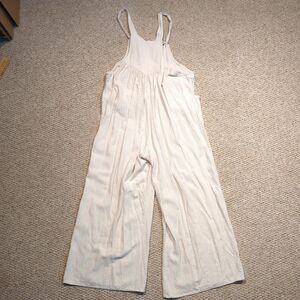 Kori Overalls Womens Small Wide Leg Pockets Tan Linen Blend Relaxed Boho