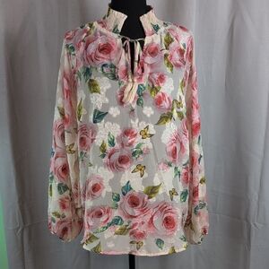 Kori Pink and Cream Long Sleeve Tie Front Blouse
