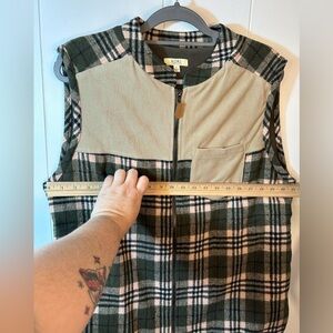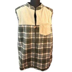 Kori Women’s Green and Pink Plaid Soft Zippered Vest Size Large