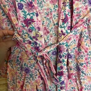 Kori size Medium Open Floral Pink Kimono Wrap with Waist Tie and Wide Sleeves