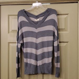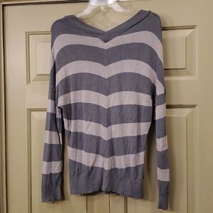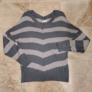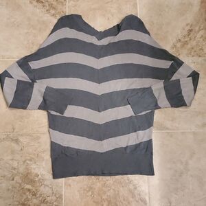 In good used condition. Green striped v neck with dolman sleeves. Oversized size M/L. Feel free to ask questions and make offers