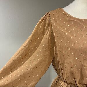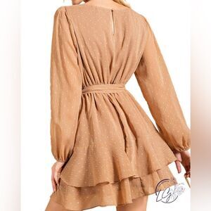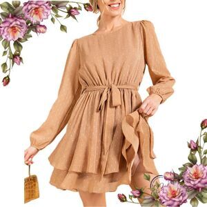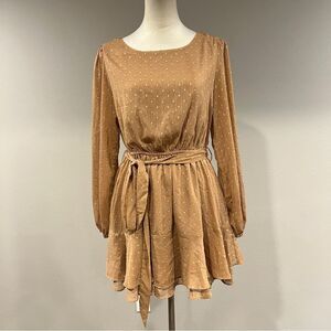 Kori Elegant Tan Long Sleeve mini Dress with belt size medium