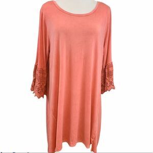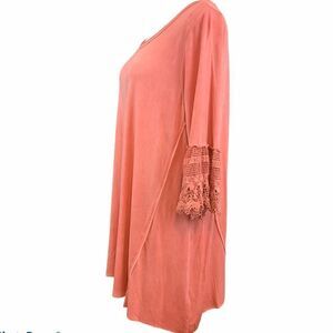 Dusty pink almost salmon vintage wash tunic/ dress with crochet sleeves