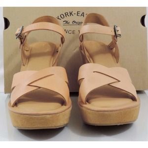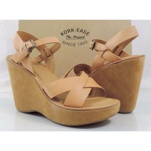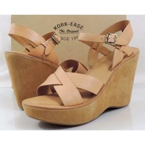 Kork Ease Bette Platform Wedge Heels Sandal Leather Natural Size 10