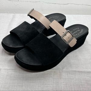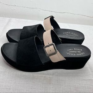 Kork Ease Bisti Platform Slides Sandals 8M Black Gray Leather Suede Slip On