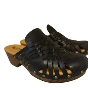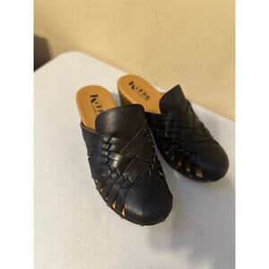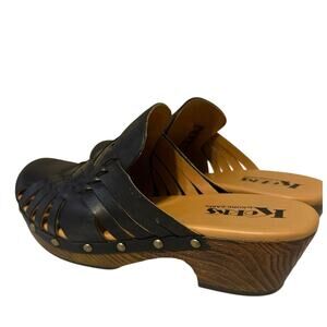 Kork Ease Block Heel Platform Slide Clogs Sandal Leather Black Women's Size 8