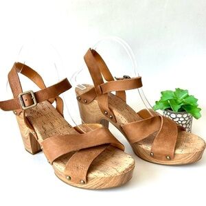 Kork Ease Drew Brown Leather Nailhead Studded Cross Banded Platform Sandals 10