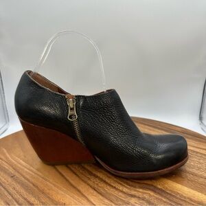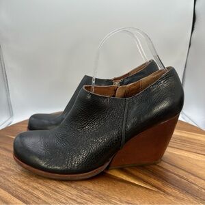 Kork Ease Holmes Ankle Booties Black Leather Block Wedge Chunky Women's 8M
