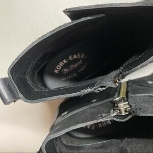 Kork Ease Kenai Boot Suede Black Leather Ankle Bootie Studded Strap