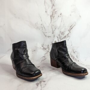 Kork Ease Kissel Booties Black Leather Block Heel Square Toe