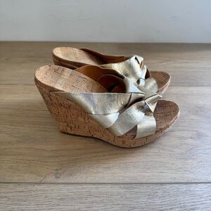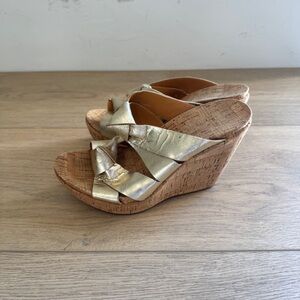 Kork Ease Knotted Gold wedge heeled sandals Size 6