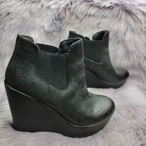 Kork Ease Korks Leather Platform Wedge Ankle Booties Womens Size 6.5 Black