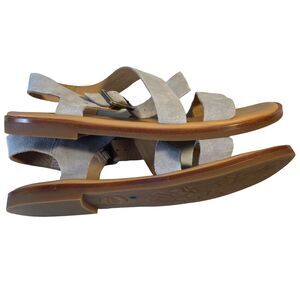 Kork Ease Nogales Grey Full Grain Leather Ankle Strap Flat Sandals Size 39 US 8