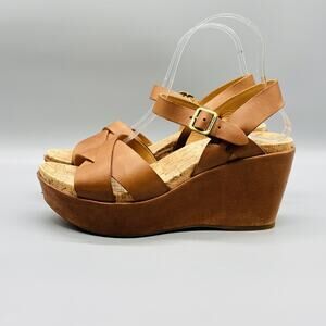 Kork Ease Sandal Womens 8 Brown Leather Wedge Platform Ankle Strap Buckle Shoes