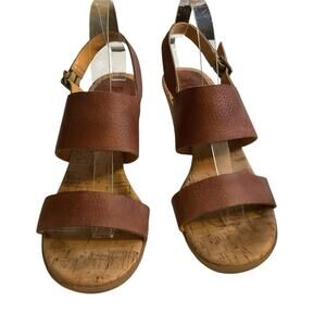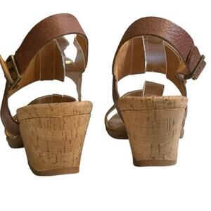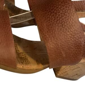 Kork Ease Sandals Minihan Tan Pebble Leather Womens Size 8M Cork Wedge Comfy
