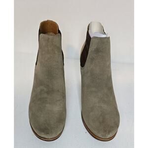 * Made with lt. Brown/Taupe suede, these ankle boots have a roundish toe shape, mid-height block heel, and a pull-on closure for easy wear.
