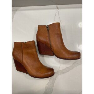 Kork Ease Womens Leather Natalya Wedge Ankle Boots Distressed Tan Leather Size 8