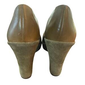 Kork Ease Women's Liliana Olive Green Leather and Suede Wedge Pumps - Size 8. Excellent preowned condition - no stains or flaws. MSRP $165.