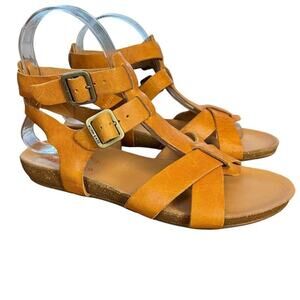 Kork Ease Womens Pumpkin Orange Leather Ankle Strap Sandals Flats Shoes sz 7