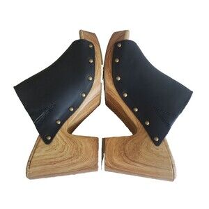 The Kork Ease Women's Size 10M Danika Clogs are stylish black studded mule peep toe sandals with an ultra-high block heel, perfect for a casual occasion. Made of leather with a cushioned and breathable insole, these sandals offer comfort and support. The peep toe design and studded accents add a touch of edgy style, while the rubber outsole provides durability. Ideal for the summer, fall, and spring seasons, these sandals are a fashionable choice for women looking for a blend of comfort and fashionable design.