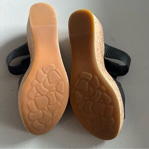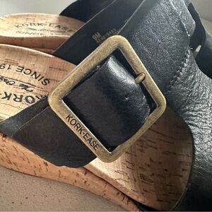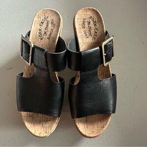 It’s topped with our etched signature buckle and set on our ultra-comfortable cork wedge.