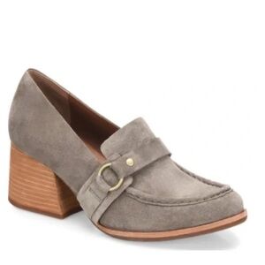 Kork-Ease Aki Gray Pietra Suede 90’s Chunky Slip On Heel Loafer